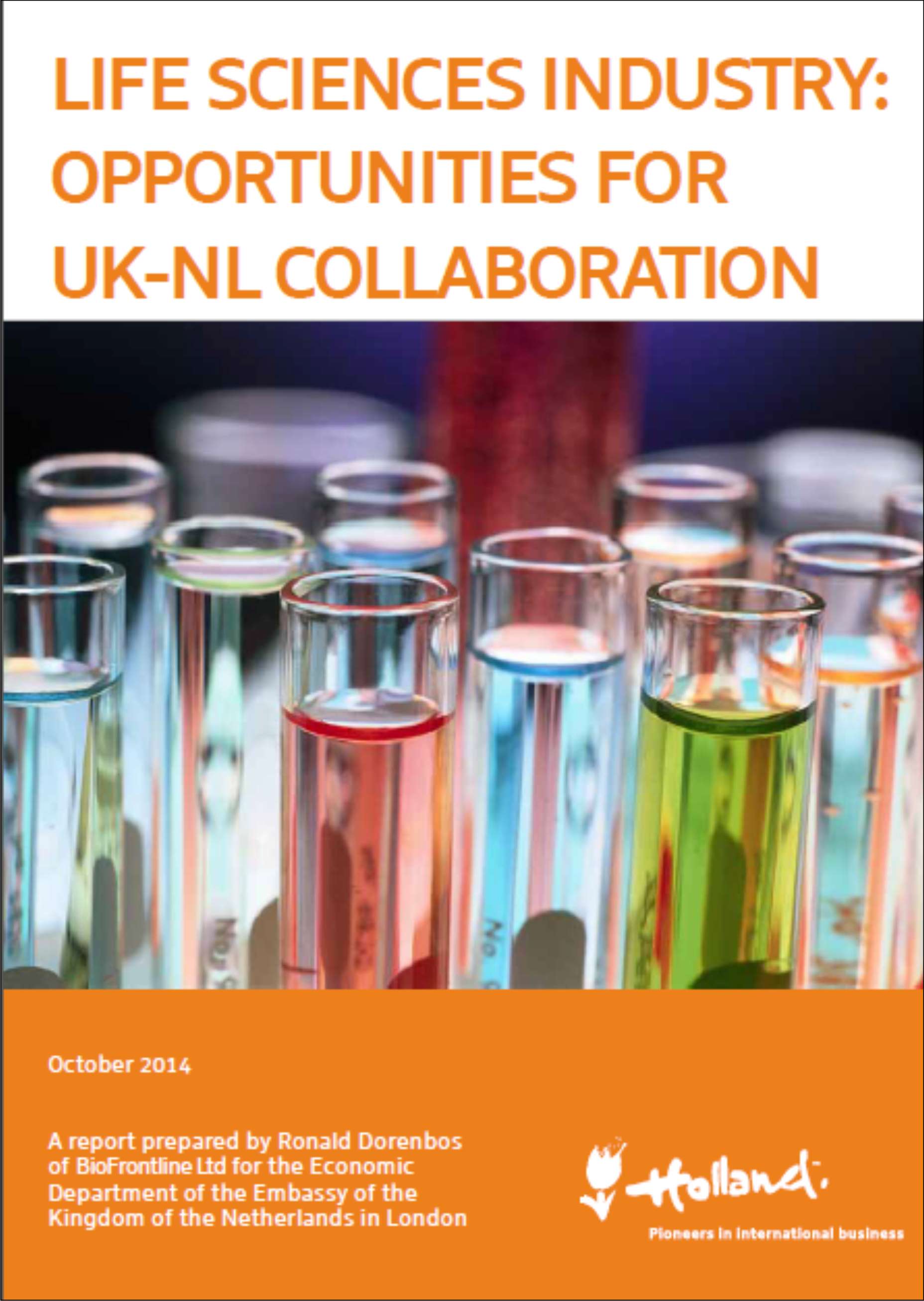 BioFrontline was commissioned by the Economic Department of the Embassy of the Kingdom of the Netherlands in London to prepare an overview of the life science sector in the UK with the aim to increase collaborative activities between the life science communities in the UK and the Netherlands. The report prepared by BioFrontline was spread among more than 1500 life science professionals in the Netherlands and can be downloaded here: